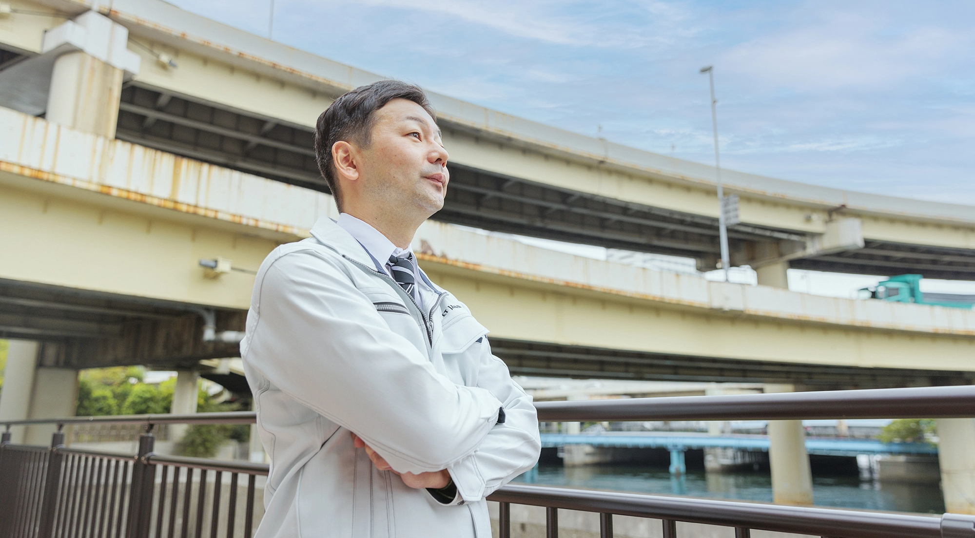 前職は、約6年間建設会社に勤務し、宅地造成工事や高速道路新設工事における法面の整備や、排水の丁張がけのほか、施工管理などを担当していました。少しずつスキルが身につき、一級土木施工管理技士の資格を取得したことがきっかけで、キャリアアップを意識するようになりました。それまで公共工事は、発注者(国や地方自治体など)と受注者である建設会社や設計会社のみで行っていると思っていましたが、実際には発注者支援業務を行う企業が両者の橋渡し役を担っていることを知り、強く興味を持ちました。転職するなら、これまでの知識を活かしながらキャリアアップできる仕事をしたいと考えていたため、発注者支援業務の技術者は、自分に合っていると感じました。