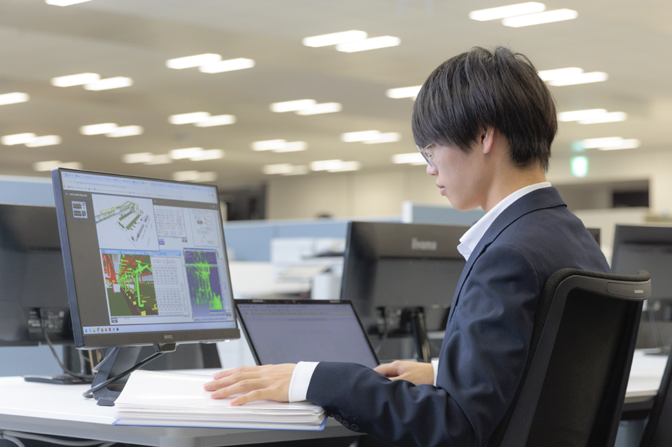 親から言われた「人から信頼されることが一番大事」という言葉を大切にしています。CADの操作や図面作成を一から丁寧に指導してくださった先輩方をお手本に、年次が上がっても後輩たちと誠実に向き合い、現場で頼られる社員をめざしています。将来的には内勤職へ挑戦し、後進の指導や育成、会社全体の発展に貢献したいと考えています。なかでも人事として、部署の垣根を超えて働きやすい環境づくりに取り組みたいです。その際、実務の状況を理解し的確な施策を打ち出せるよう、今後は現在の常駐先だけでなくさまざまな現場で経験を重ねていきたいです。実際に社内では、技術職から他業種へのキャリアチェンジを果たした方も多く、挑戦を後押ししてくれる社風です。まずは現場で確かな信頼を築き、その経験を武器に、ゆくゆくは社員全体の想いに応えられる存在となりたいです。