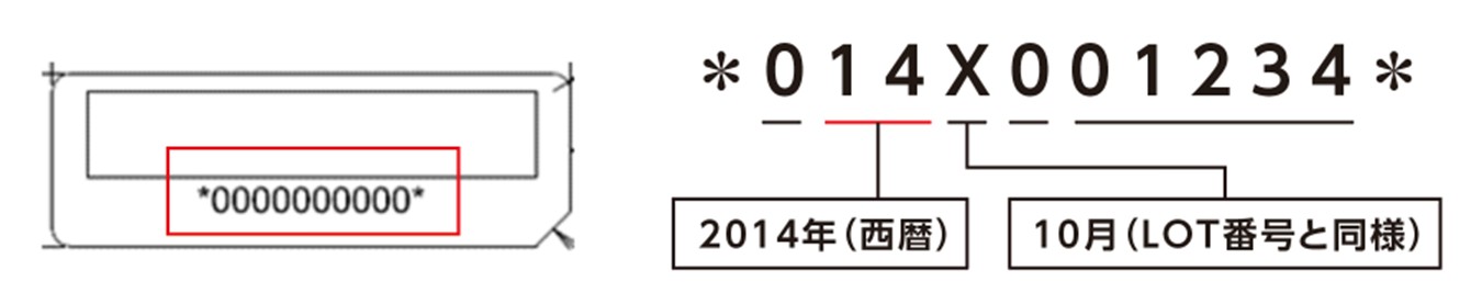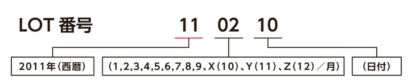 ロット番号またはシリアル番号の西暦を読み取って確認できます。