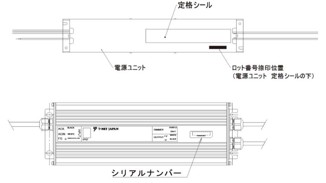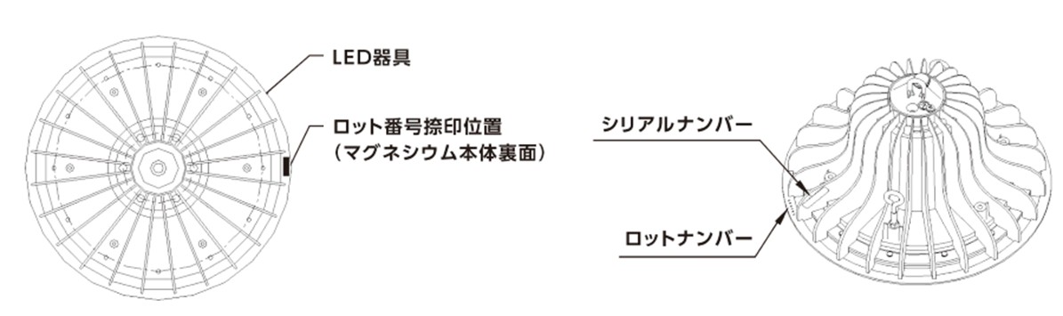 ■シリアルナンバーはLED器具の放熱フィンと電源ユニットの上面に張り付けております。