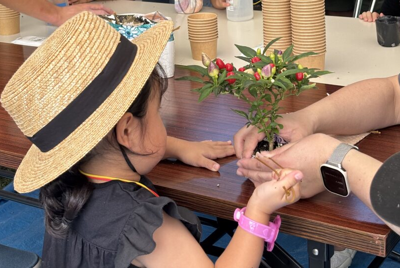 ワークショップで使用される資材の一部に洋服に使用できなくなったリサイクル生地を利用し、ものを大切にするこころを学びながら、イベントブースは思い思いのお花と色とりどりの布でできた花活布を手に、子どもたちの熱気であふれていました。