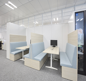 オンライン会議用の個室や個別ブースを配置。ソロワークスペースの設置により、集中して仕事ができるようになります。 |