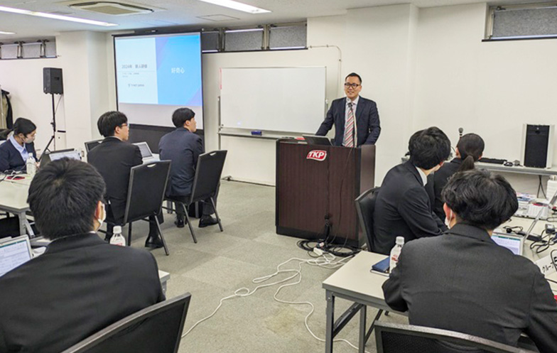 研修内容は、社会人としての心構えやビジネスマナーなど、学生から社会人へのスムーズな移行に欠かせないテーマを中心に構成しています。1年目の最後に改めてビジネスマナーなどの基礎スキルや、ティーネットジャパンの社員として求められるものを再確認する1年目研修も実施しています。