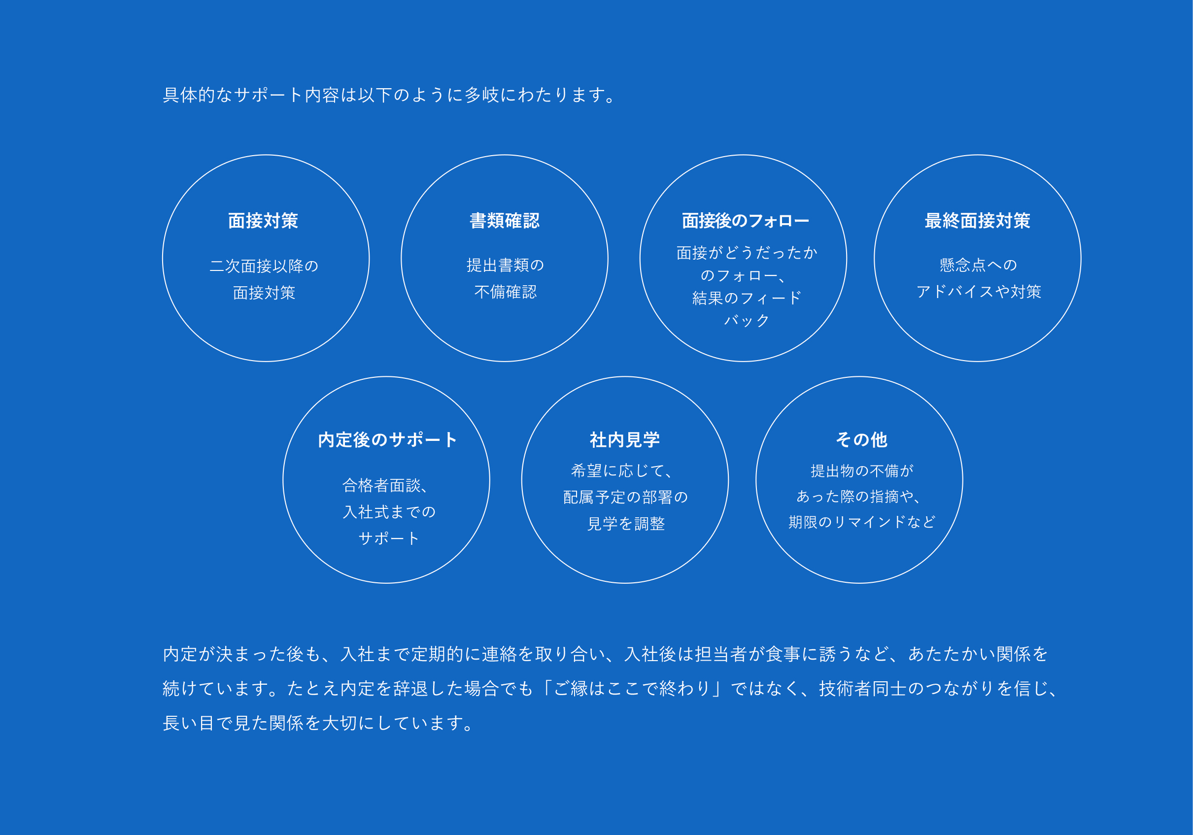 事業部責任者との個人面談を行います。最終選考のみ、当社規定により対象の方に、一律交通費を支給します。